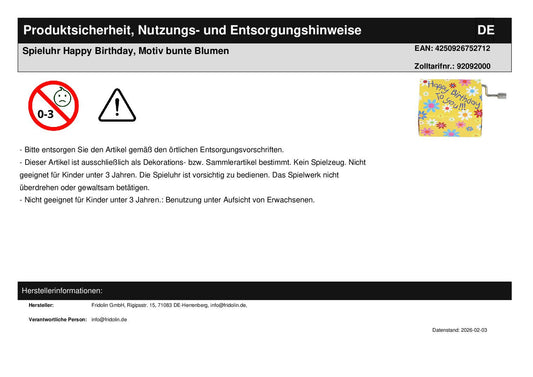 Spieluhr Happy Birthday, Motiv bunte Blumen