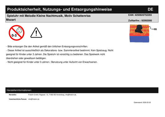 Spieluhr mit Melodie Kleine Nachtmusik, Motiv Mozart