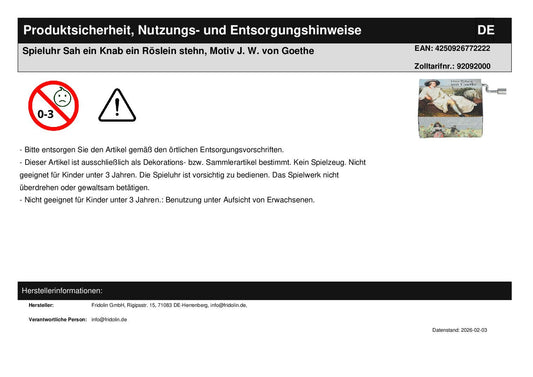 Spieluhr Sah ein Knab ein Röslein stehn, Motiv J. W. von Goethe