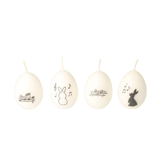 Set mit 4 Stück Eier-Kerzen, weiß/anthrazit, verschiedene Motive