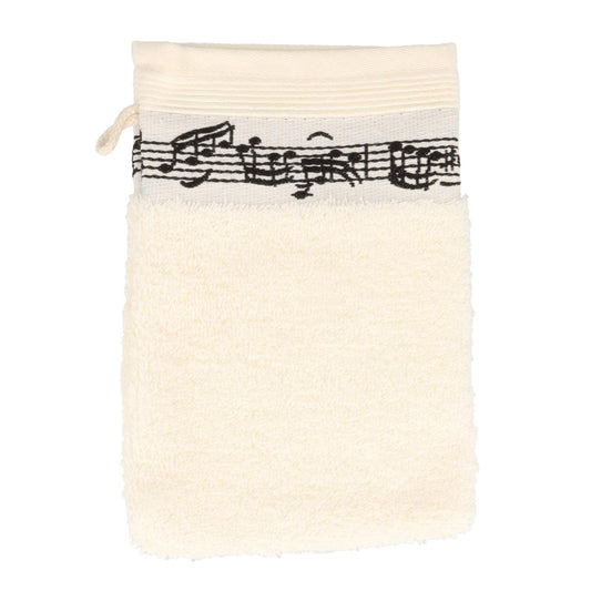 cremefarbener Waschhandschuh mit eingewebter Notenzeile, Noten