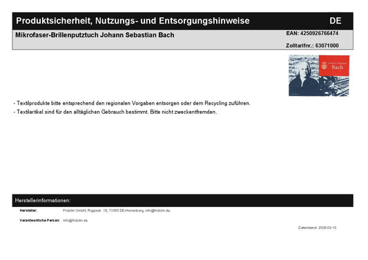 Mikrofaser-Brillenputztuch Johann Sebastian Bach