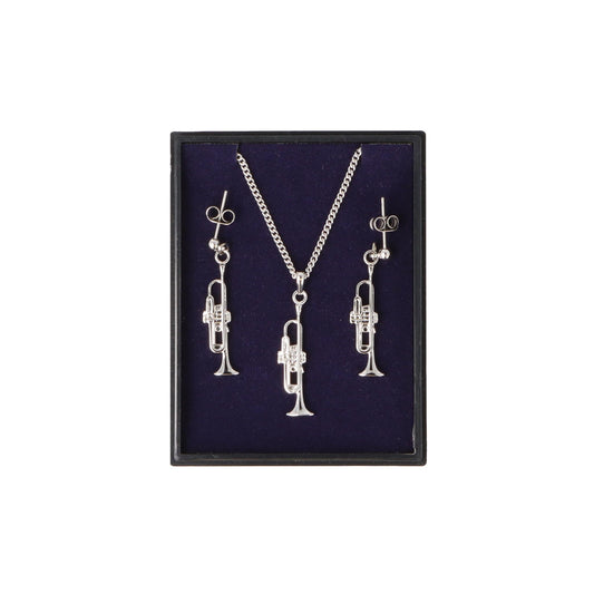 Trompete Ohrhänger und Anhänger mit Kette in Displaybox, versilbert oder vergoldet, Blasmusik