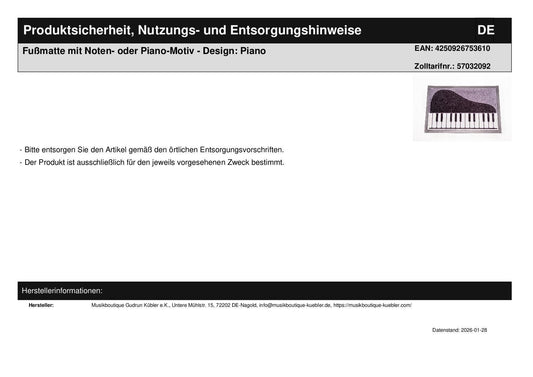 Fußmatte mit Noten- oder Piano-Motiv