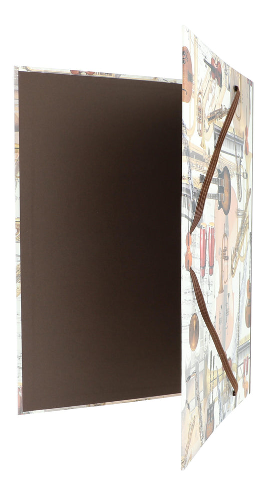weiße Schnellhefter mit verschiedenen Instrumenten oder Notenzeichen