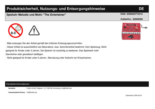 Spieluhr Melodie und Motiv "The Entertainer"