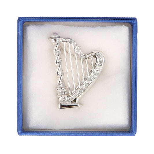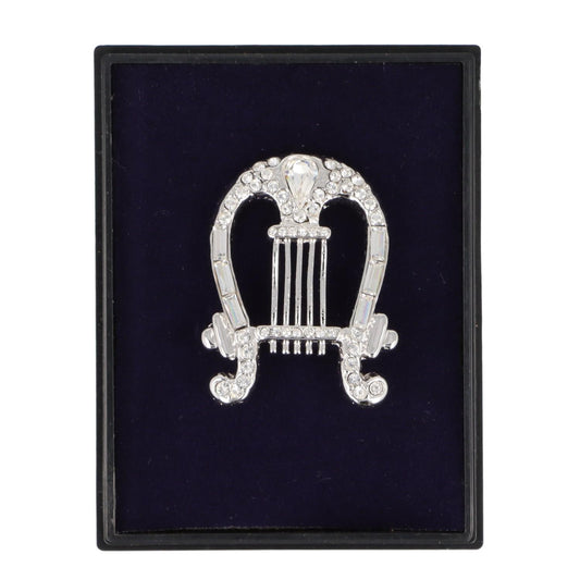 Brosche Harfe mit Schmucksteinen in Geschenkbox, Farbe silber oder silber matt