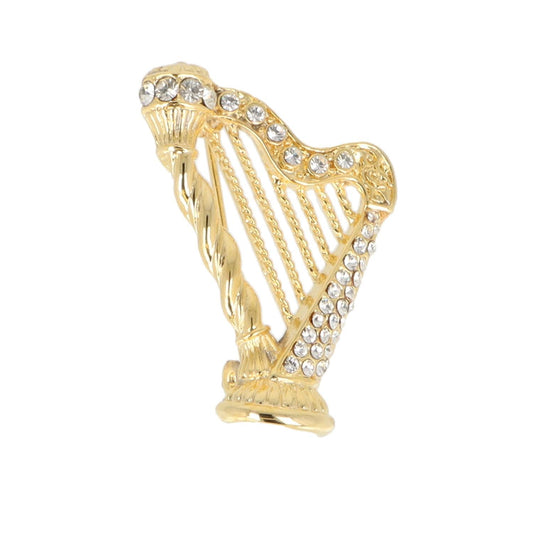 Brosche Harfe mit Schmucksteinen in Geschenkbox, Farbe gold oder silber