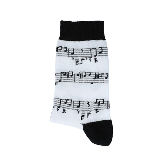 Socken mit schwarzer Notenlinie, Grundfarbe weiß, Noten, Musik-Socken