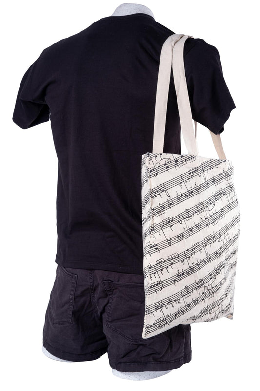 Baumwoll-Henkeltasche mit schwarze Notenlinien