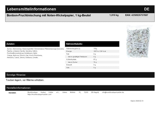 Bonbon-Fruchtmischung mit Noten-Wickelpapier, 1 kg-Beutel