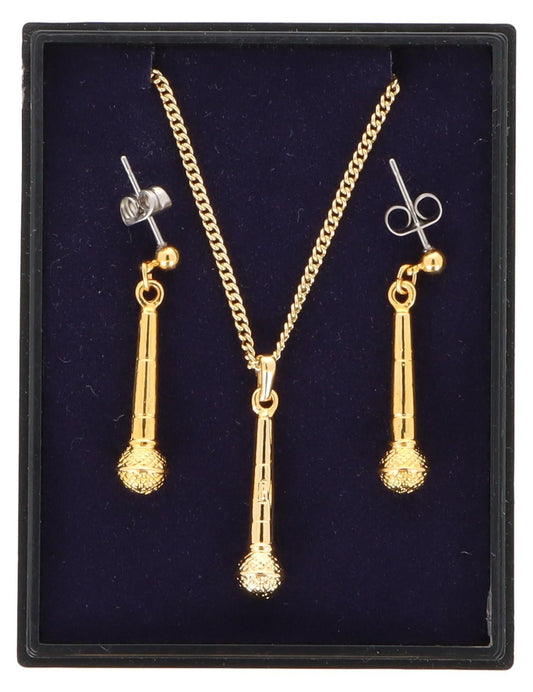 Mikrofon Ohrhänger und Anhänger mit Kette in Displaybox, vergoldet