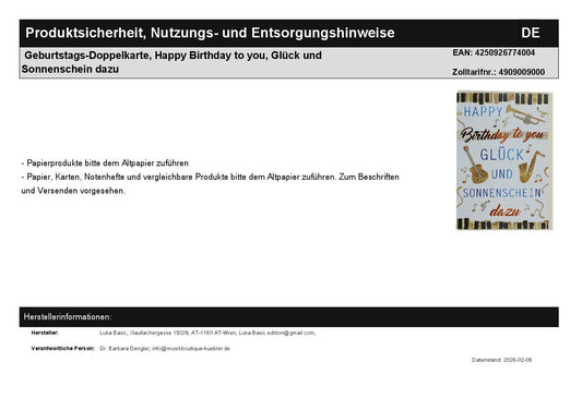Geburtstags-Doppelkarte, Happy Birthday to you, Glück und Sonnenschein dazu
