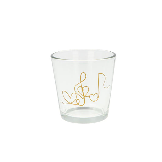 Teelichtglas mit Herz, Violinschlüssel und Note, Windlicht