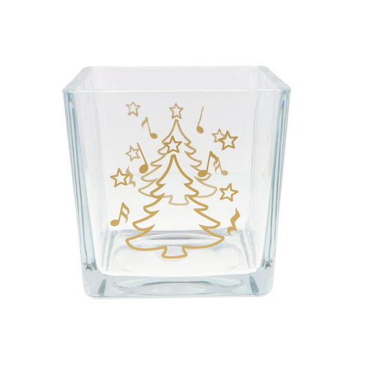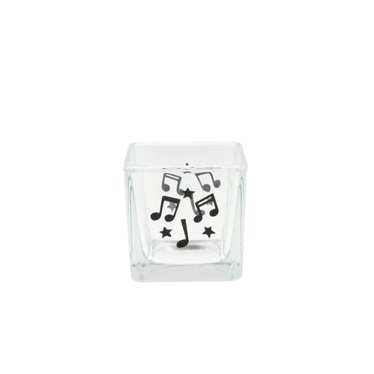 quadratisches Teelichtglas mit Noten und Sterne, Windlicht