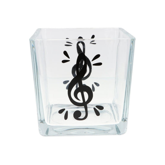 quadratisches Teelichtglas mit Violinschlüssel, Windlicht