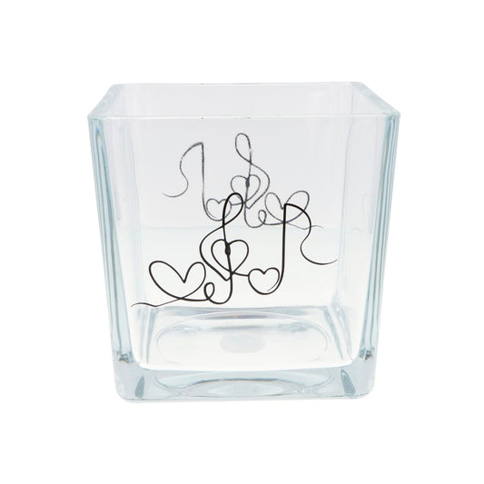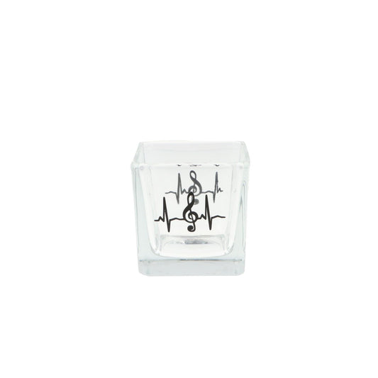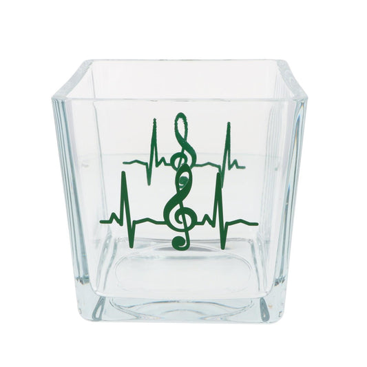 quadratisches Teelichtglas mit Herzschlag und Violinschlüssel, Windlicht