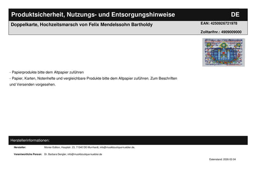 Doppelkarte, Hochzeitsmarsch von Felix Mendelssohn Bartholdy