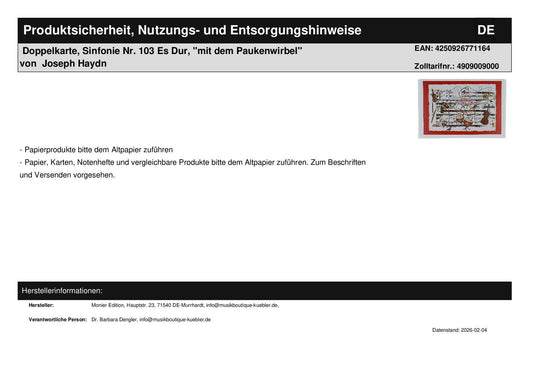 Doppelkarte, Sinfonie Nr. 103 Es Dur, "mit dem Paukenwirbel" von Joseph Haydn
