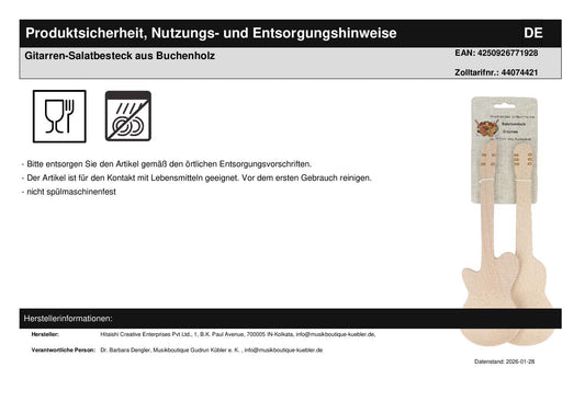 Gitarren-Salatbesteck aus Buchenholz