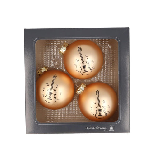 3er-Set Weihnachtskugeln mit Konzertgitarre-Druck, verschiedene Farben