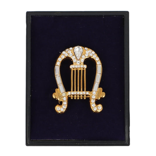 Brosche Lyra mit Schmucksteinen in Geschenkbox, Farbe gold oder silber