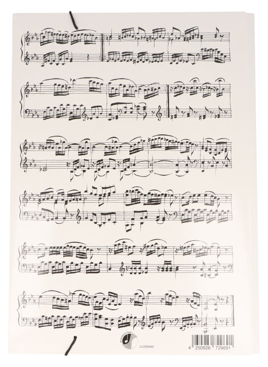 weiße Sammelmappe mit schwarzen Notenzeilen