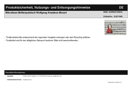 Mikrofaser-Brillenputztuch Wolfgang Amadeus Mozart