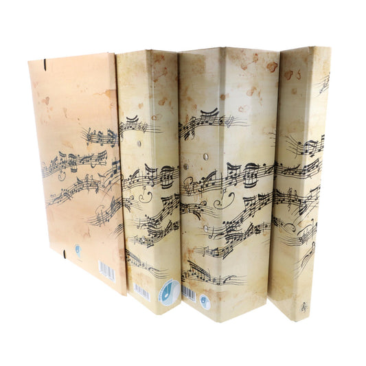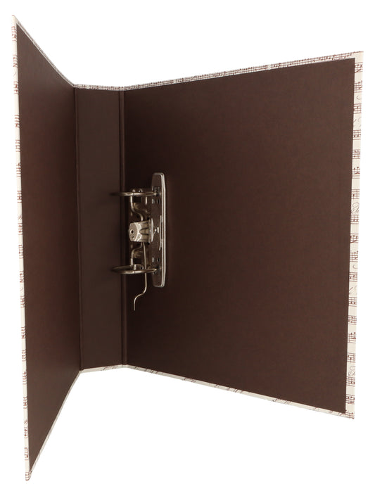 musikalischer Ordner, schmaler Ringbuchordner und Sammelmappe in creme schwarzen Noten/Notenzeilen
