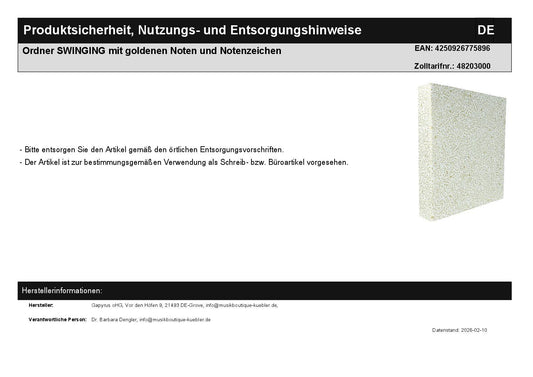 Ordner SWINGING mit goldenen Noten und Notenzeichen