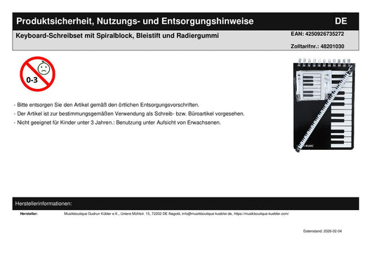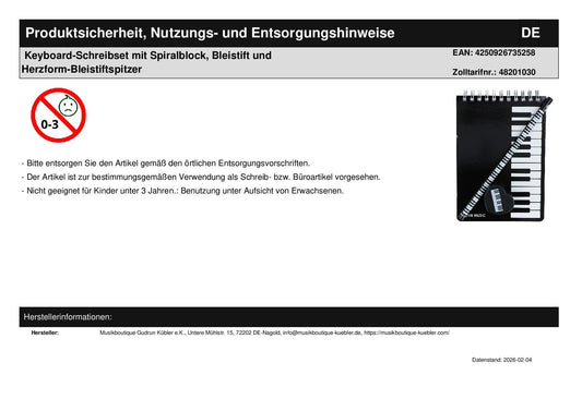 Keyboard-Schreibset mit Spiralblock, Bleistift und Radiergummi