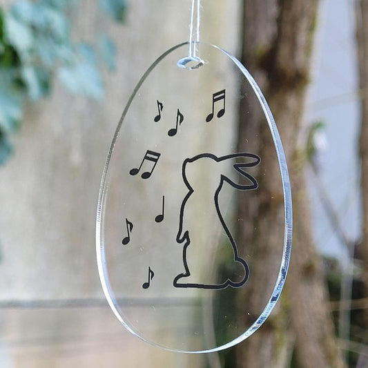 Ostereiform Anhänger mit Osterhase und Noten aus Acryl
