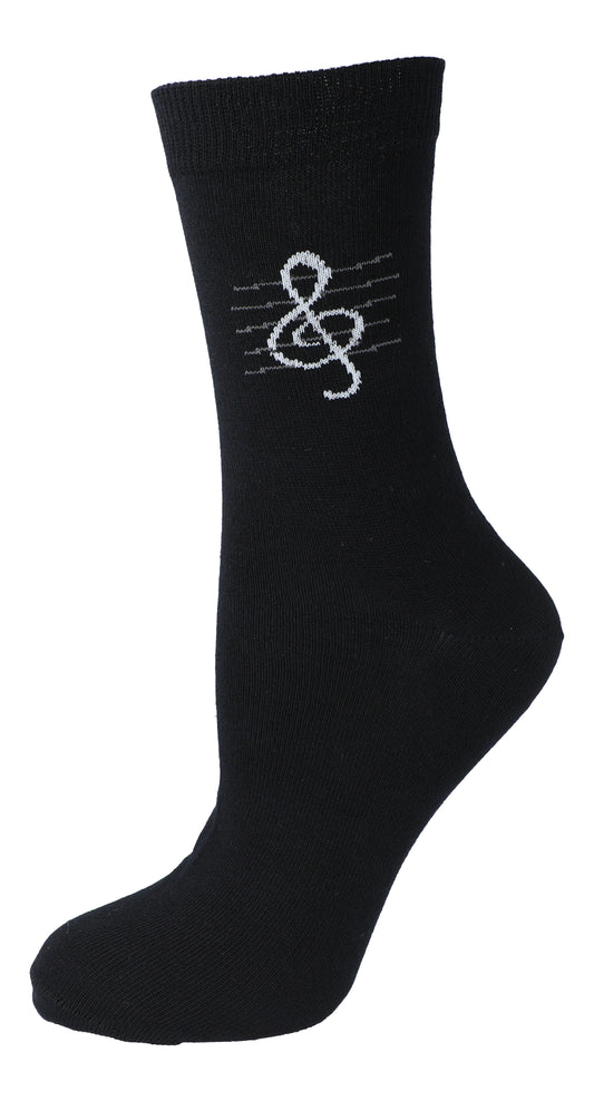schwarze Socken mit eingewebtem Violinschlüssel, Musik-Socken