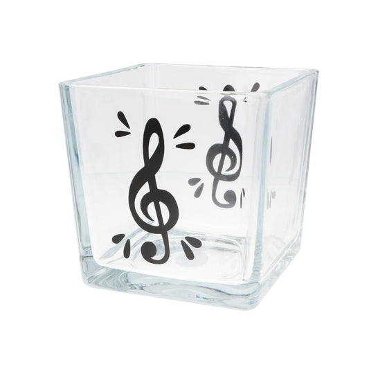 Glas-Vase mit Herz, Violinschlüssel und Note