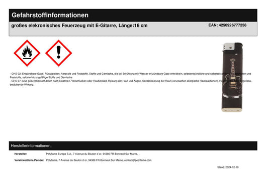 large electronic lighter with electric guitar, length: 16 cm