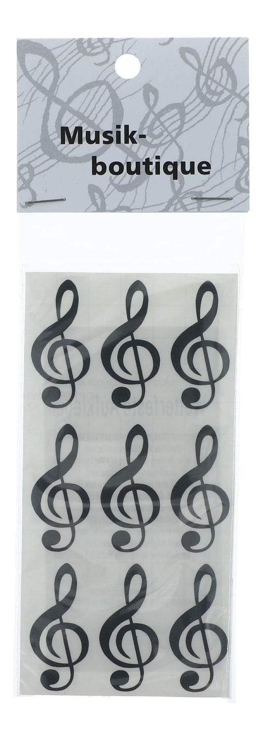 Treble clef stickers, 1 sheet with 9 pieces in black, gold or silver