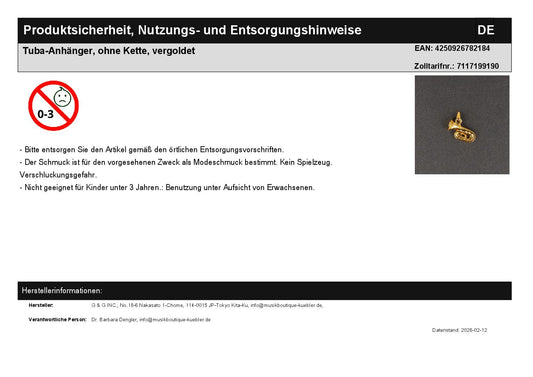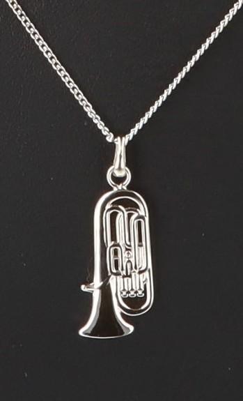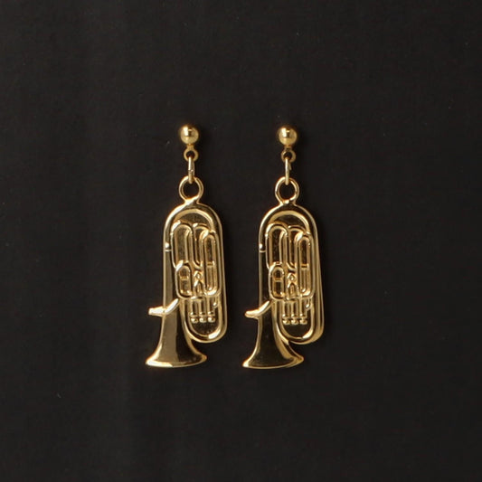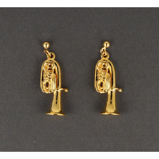 Tuba Ohrhänger und Anhänger mit Kette in Displaybox, versilbert oder vergoldet, Blasmusik