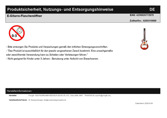 E-Gitarre-Schlüsselanhänger und Kugelschreiber mit Noten-Anhänger im Set - Farbe: schwarz
