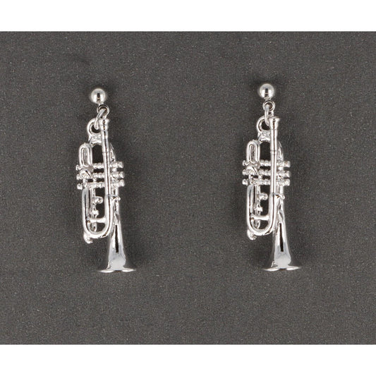 Trumpet earrings, silver-plated or gold-plated, brass music