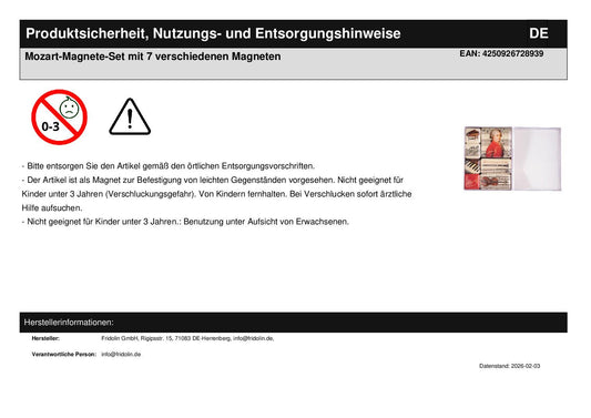 Mozart magnet set with 7 different magnets