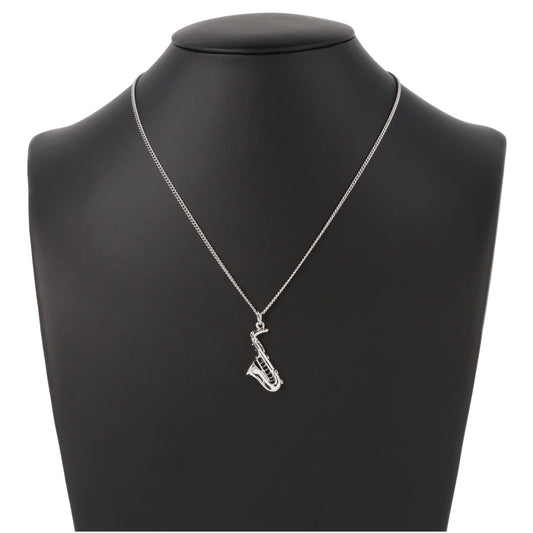 Saxophon-Anhänger, mit Kette, versilbert