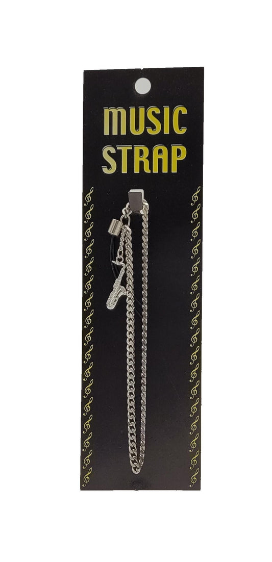 Mobile phone pendant silver-plated, saxophone