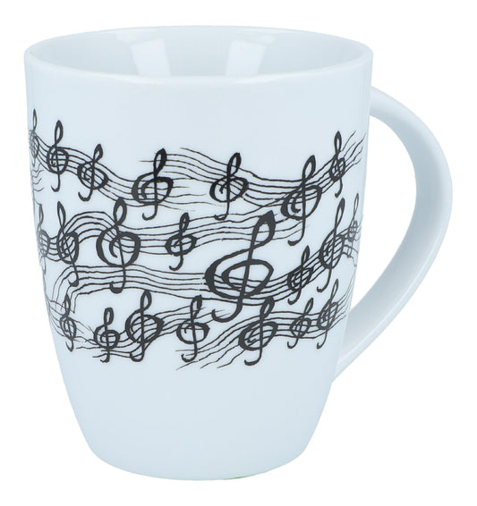 Henkelbecher bedruckt mit diversen Instrumenten und musikalischen Motiven