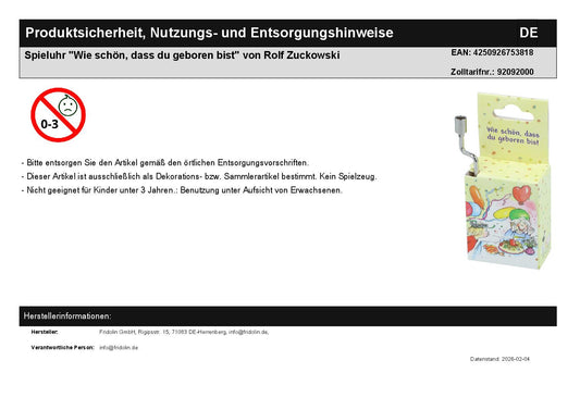 Music box "How wonderful that you were born" by Rolf Zuckowski