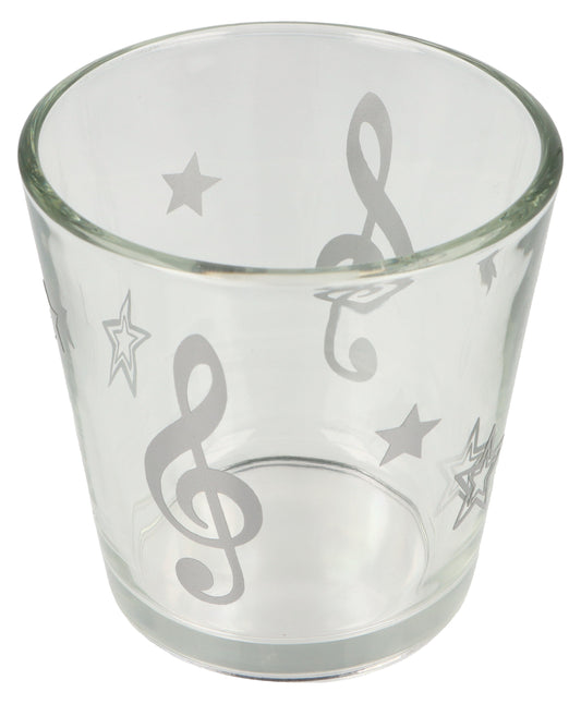 Teelichtglas mit Violinschlüssel, Noten und Sterne, Windlicht