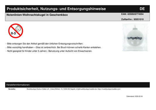 Unsere Musik-Weihnachtskugeln sind in verschiedenen Designs und Farben erhältlich, sodass Sie die perfekte Kombination für Ihren Baum oder als Dekoration für Ihr Zuhause finden können. Verleihe deinem Weihnachtsfest das gewisse Etwas und feiere mit einem Hauch Musik!