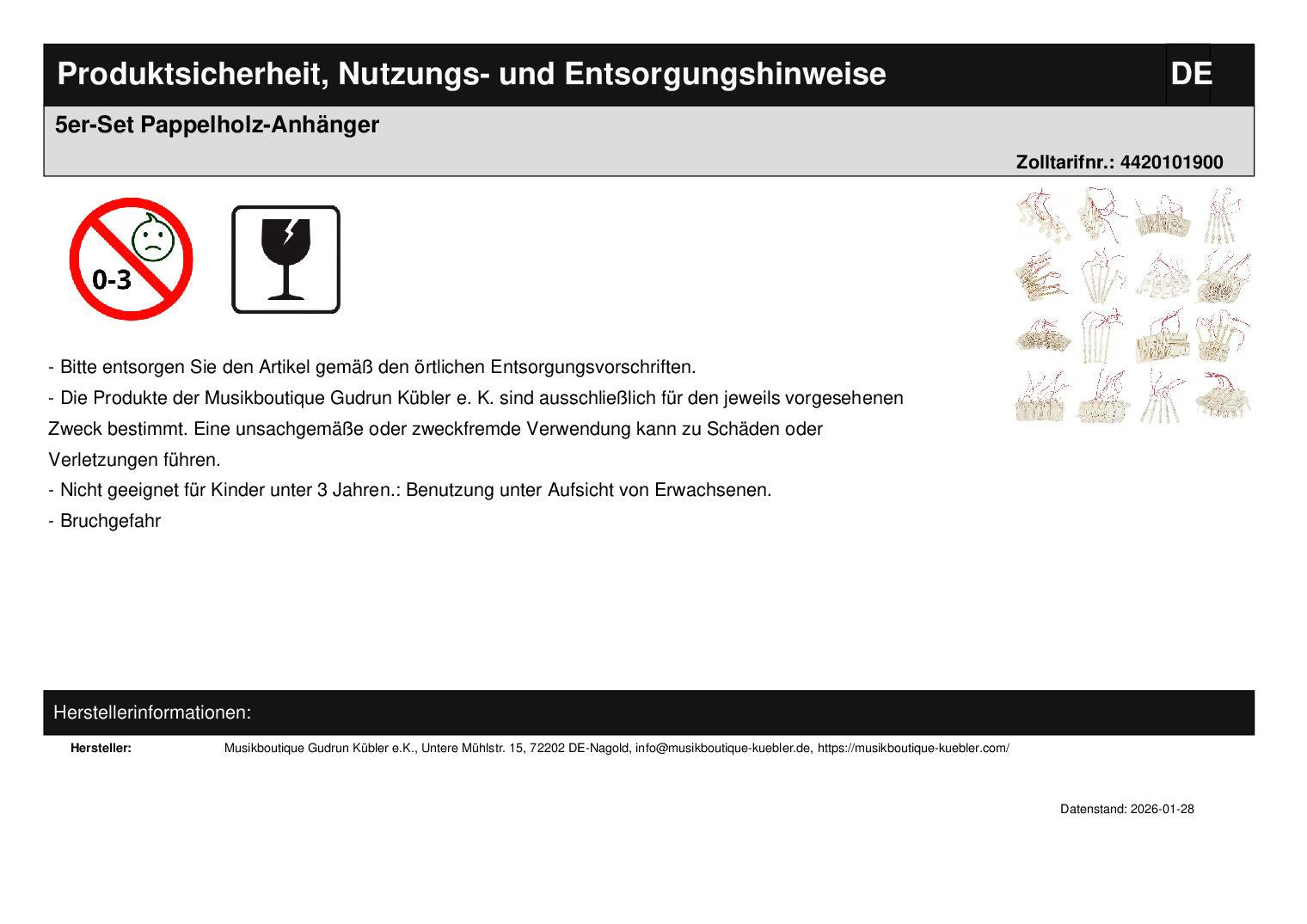 Instrumenten-Anhänger aus Pappelholz natur, z. B. als Geschenkanhänger oder für den Weihnachtsbaum