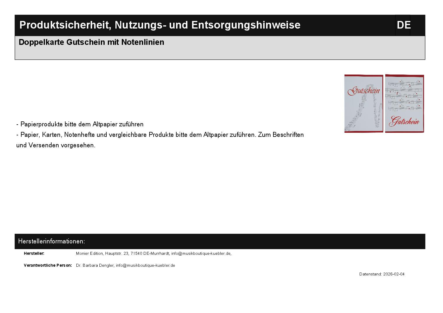 Double card voucher with music lines