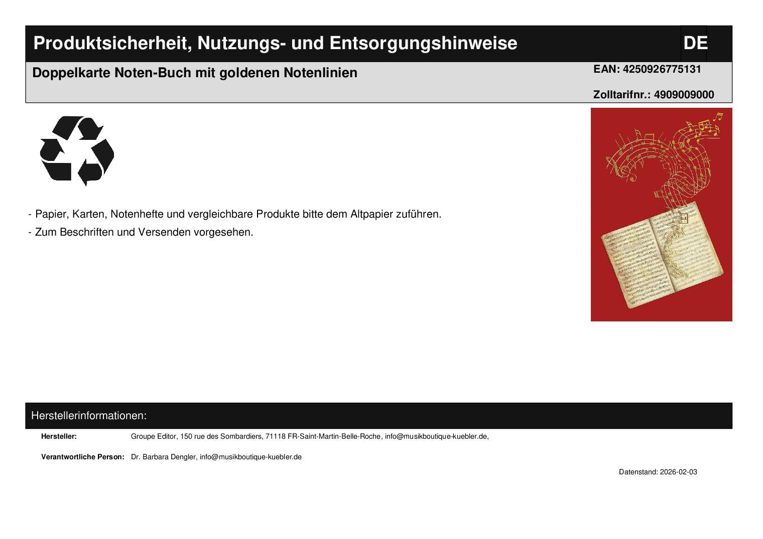 Double card music book with golden music lines