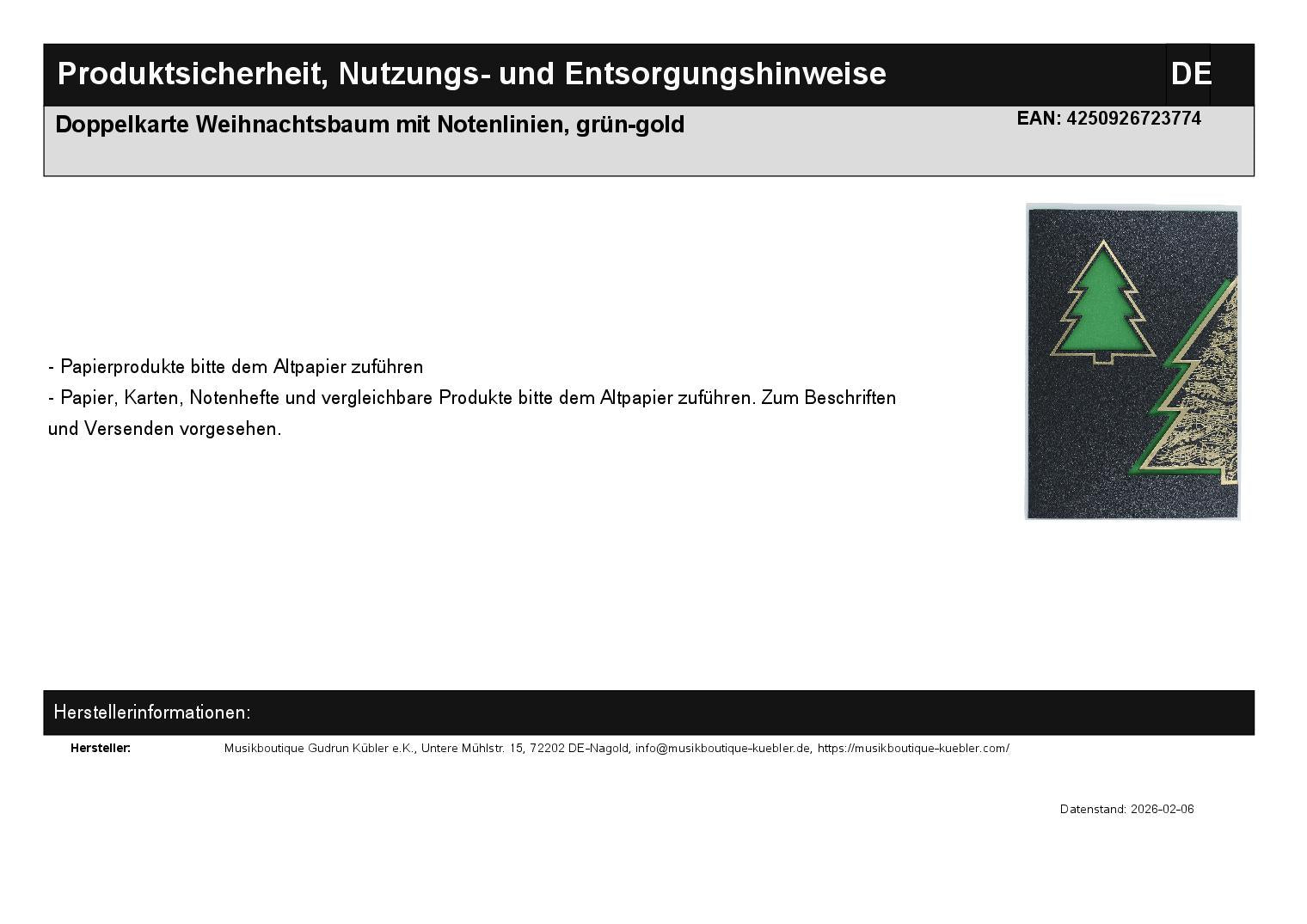 Double card Christmas tree with music lines, green-gold